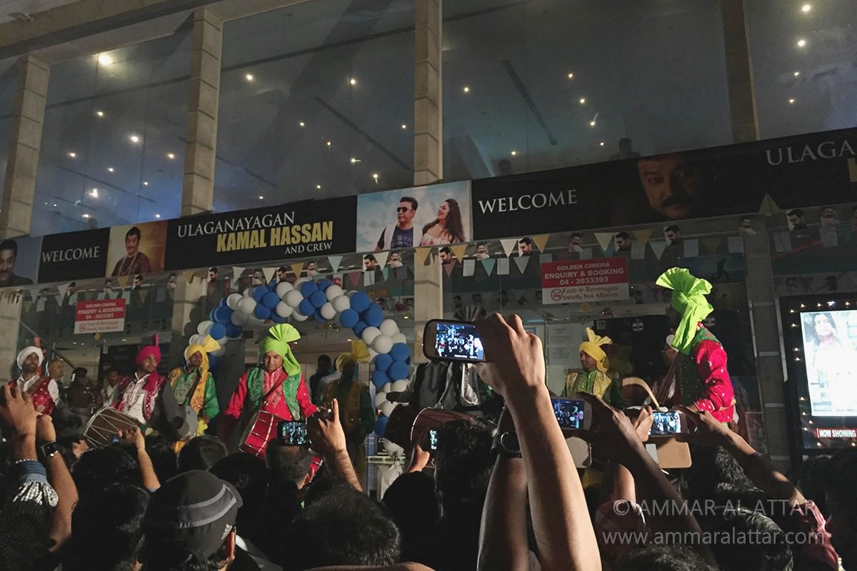 Plaza Cinema periodically screened Arabic and American films, but primarily programmed Indian cinema, showing small independent movies alongside Hindi, Tamil and Malayalam blockbusters. Movie posters, which were posted in wooden boxes on the street and on abras carrying commuters across Dubai Creek, included text in Hindi, Arabic and English, indicative of the cinema’s diverse audience. In the mid-2000s, with increasing competition from more technically advanced multiplexes, Plaza Cinema changed owners and was renamed Golden Cinema. When it officially closed on 2 May 2015, the last event was the world premier of Uttama Villain, a Tamil comedy-drama, with Kamal Hassan, the film’s leading actor and one of Indian cinema’s biggest celebrities, in attendance.
