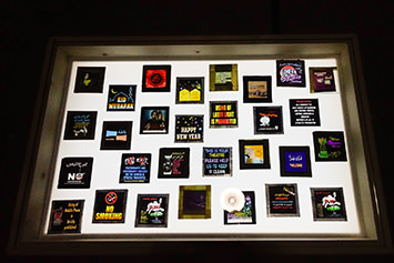 Ammar Al Attar's Plaza Cinema (2017) stems from the artist's ongoing efforts to rescue and record the contents of decommissioned movie-houses in the UAE. Since April 2015, the artist has concentrated on Plaza Cinema, one of the first and most popular theatres in the country. Opened in 1972 in Bur Dubai, the cinema is now in the midst of being demolished, clearing the way for future development. The photographs, objects and ephemera shown here are abstracted, reconstituted and framed in a display that tracks the artist’s personal engagement with an important part of Dubai’s cultural history.